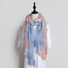 杭州丝绸丝巾女真丝桑蚕丝围巾披肩两用长款百搭薄款刺绣新款纱巾