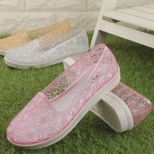 夏季平跟女凉鞋镂空塑料水晶果冻鞋平底沙滩鞋鸟巢透明工作洞洞鞋