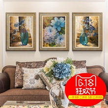 美式沙发背景墙装饰画客厅餐厅卧室三联壁画墙画玄关画挂画花卉