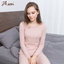 顶瓜瓜内衣女秋衣秋裤套装基础薄款保暖棉质圆领蕾丝边纯色顶呱呱