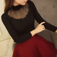 高领毛衣女修身秋冬季新款女装长袖蕾丝加厚气质淑女打底衫套头衫
