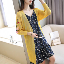 夏季外搭防晒衫针织开衫宽松绣花长袖披肩中长款外套女薄款空调衫