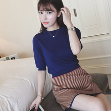 2017春装新款韩版半高领纯色中袖打底衫弹力薄针织衫五分袖毛衣女