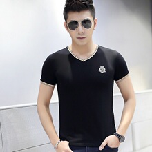 夏季男装新款V领短袖男t恤青年商务修身休闲纯棉半袖大码半袖短衫