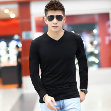 春季新款男士长袖T恤韩版V领大码男装V领休闲修身鸡心领打底衫潮