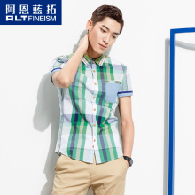 【品牌清仓】ALT阿恩蓝拓短袖衬衫2017薄款青年修身格子休闲衬衣
