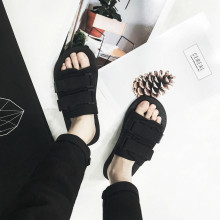 港风夏季潮流透气帆布凉鞋韩版一字拖防滑拖鞋情侣百搭男女沙滩鞋