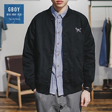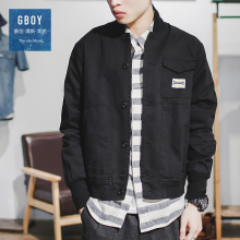 GBOY春季新款日系纯色夹克男青年外套帅气简约薄款韩版潮流棒球服