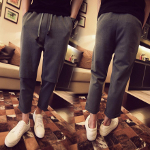 夏季男士九分裤韩版宽松直筒休闲裤 英伦小脚裤9分裤子哈伦裤潮男