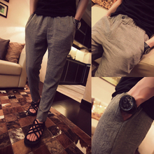 TIM呆呆韩版新款日系男士薄款锥形裤亚麻裤棉麻小脚裤休闲裤子