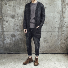 YESYE秋冬新款男士针织衫青年休闲毛衣韩版保暖中长款开衫外套潮