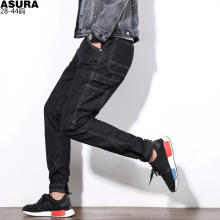 哈伦牛仔裤男加肥加大码长裤潮胖子宽松小脚青年日系黑色2017春季