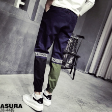 松紧腰男休闲裤工装长裤加肥加大码潮胖修身小脚哈伦裤子春季个性