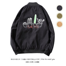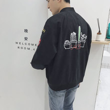 春季外套男士2017棒球领日系潮青少年文艺小清新大码印花春装夹克