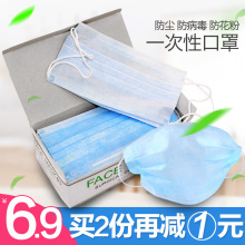 春夏男女无纺布一次性口罩50只装时尚防尘防雾霾透气活性炭口罩