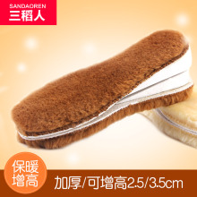 三稻人冬季手工增高加厚加绒仿羊毛保暖鞋垫吸湿透气