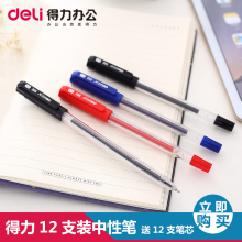得力0.5mm签字笔中性笔12支笔加12支笔芯办公水笔卡装带笔芯水笔