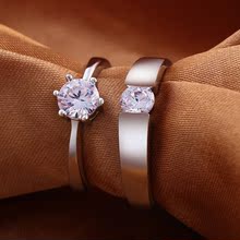 靓作坊925银 时尚情侣对戒 我愿意结婚戒指 求婚钻戒 免费刻字