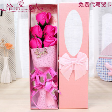 手工5朵3朵香皂玫瑰花束礼盒 创意小熊礼盒礼物情人节日生日礼品