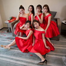 伴娘服短款2017新款春夏伴娘团礼服红色姐妹裙年会宴会晚礼服显瘦