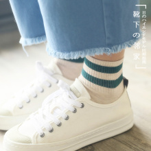 日系素色两条杠短袜 简约条纹全棉中筒袜 百搭女生短筒袜子 女