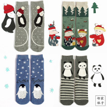 韩国卡通可爱圣诞中筒袜 秋冬女士加厚毛圈长袜 全棉毛巾袜子女