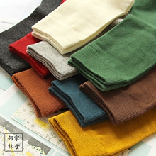 日系文艺女士长袜 秋冬复古保暖棉袜 纯棉运动中筒袜 纯色袜子女