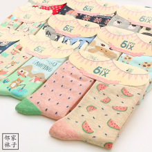 韩版可爱女生短袜 个性情侣袜船袜 春夏全棉卡通水果短筒袜子男女