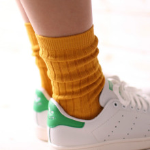 竖条纹纯色纯棉百搭简约袜子日韩堆堆袜复古彩色糖果色女士中筒袜
