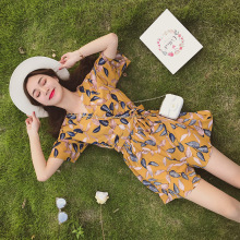 2017夏季新款韩版宽松印花雪纺连衣裙女装中长款碎花吊带a字裙子