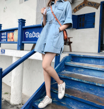 ◆MUGU蘑菇◆两穿款-工装中袖薄牛仔衬衫裙收腰系带连衣裙中长款