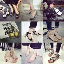 2017夏季新款露趾粗跟绑带蝴蝶结凉鞋韩版中跟百搭磨砂高跟鞋女鞋
