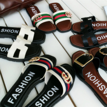 2017新款时尚英伦风拖鞋女夏天室内外穿防滑平底一字拖拼色凉拖鞋