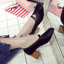 方头玛丽珍鞋女单鞋粗跟复古一字扣学生春夏中跟2017新V口奶奶鞋