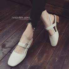 学生复古方头包头凉鞋女夏2017新款韩版百搭浅口中跟单鞋女粗跟潮