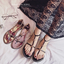 罗马鞋学生夹趾平底平跟链条韩版露趾2017夏天新款凉鞋百搭潮女鞋