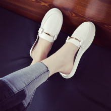 2017夏季新款韩版套脚小白鞋乐福后空单鞋子圆头懒人平底半拖鞋女