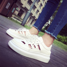 2017新款夏季小白鞋韩版板鞋透气镂空单鞋女鞋厚底系带休闲运动鞋