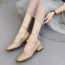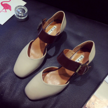 2017春秋季新款英伦风交叉绑带方头中跟粗跟浅口玛丽珍豆豆单鞋子