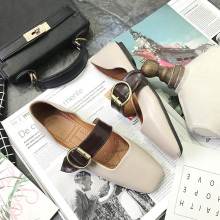 2017春季韩版复古平底玛丽珍鞋单鞋女皮带扣浅口方头拼色百搭女鞋