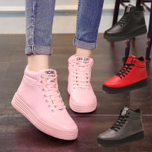 秋冬季内增高女鞋加绒系带高帮鞋女运动鞋韩版厚底休闲鞋坡跟棉鞋