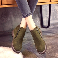 2016欧美新款女鞋拉链粗跟短筒尖头短靴子秋冬中跟高跟马丁靴裸靴