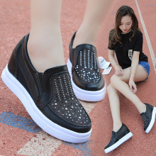 乐福鞋2017春新款单鞋韩版水钻网纱运动鞋内增高女鞋一脚蹬懒人鞋