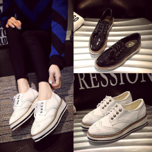 丽己单鞋女2017春秋季新款松糕鞋厚底圆头系带英伦风布洛克雕花女