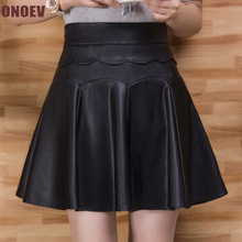 Onoev短裙春秋新款皮裙半身裙高腰pu皮蓬蓬裙百褶裙伞裙A字裙女裙