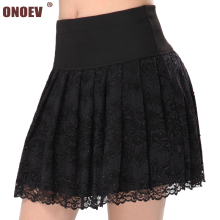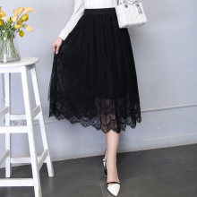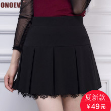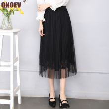 Onoev2017夏中长半身裙黑色蕾丝裙网纱长裙女a字大摆显瘦百褶裙子