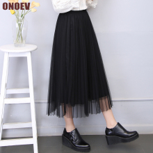 Onoev春夏新款百褶网纱半身裙高腰A字大摆仙女裙蓬蓬纱裙女中长裙