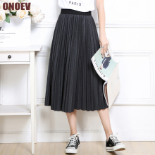 2017春夏季新款百褶半身长裙韩版修身显瘦大摆a字裙百褶裙中长款