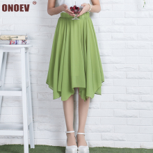 Onoev夏季新款女装雪纺中裙不规则仙女裙A子裙松紧半身裙夏中长裙
