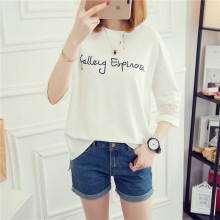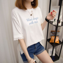 2017夏季短袖t恤韩版字母绣花短袖T恤蕾丝袖潮体恤女上衣女装